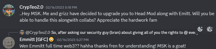 With experience of working for 27+ servers as Collab Manager and Moderator. Sold out multiple projects. Currently managing collabs for 3 active communities with 2k+ avg entries each. I have dedicated 1.5+ years to web3, gaining valuable experience and insights along the way. I will relentlessly strive to not only meet but also surpass your KPIs and objectives.